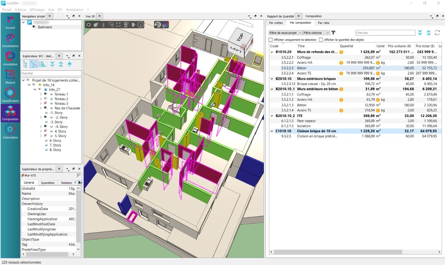 JustBIM va plus loin que la simple exploitation de vos maquettes numériques. Il vous permet d’obtenir vos quantitatifs et pièces écrites (DQE, DPGF, CCTP…).
