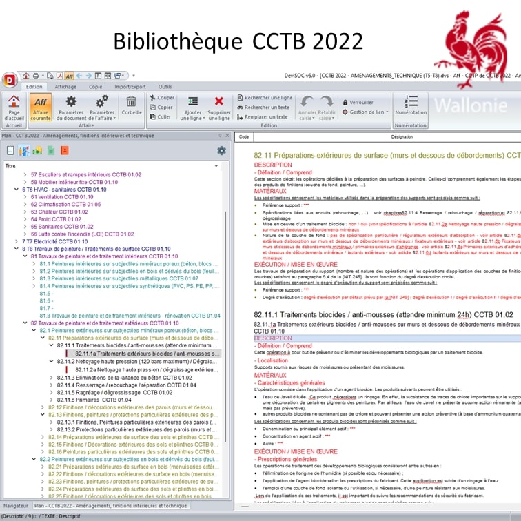 - La bibliothèque CCTB est constituée de presque 9500 éléments de descriptifs techniques pré-rédigés et mis à jour régulièrement.