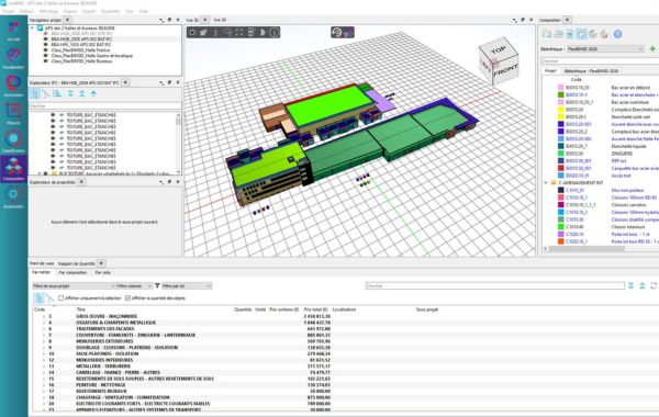- Chaque donnée est liée à une source : plan, objet BIM, bibliothèque